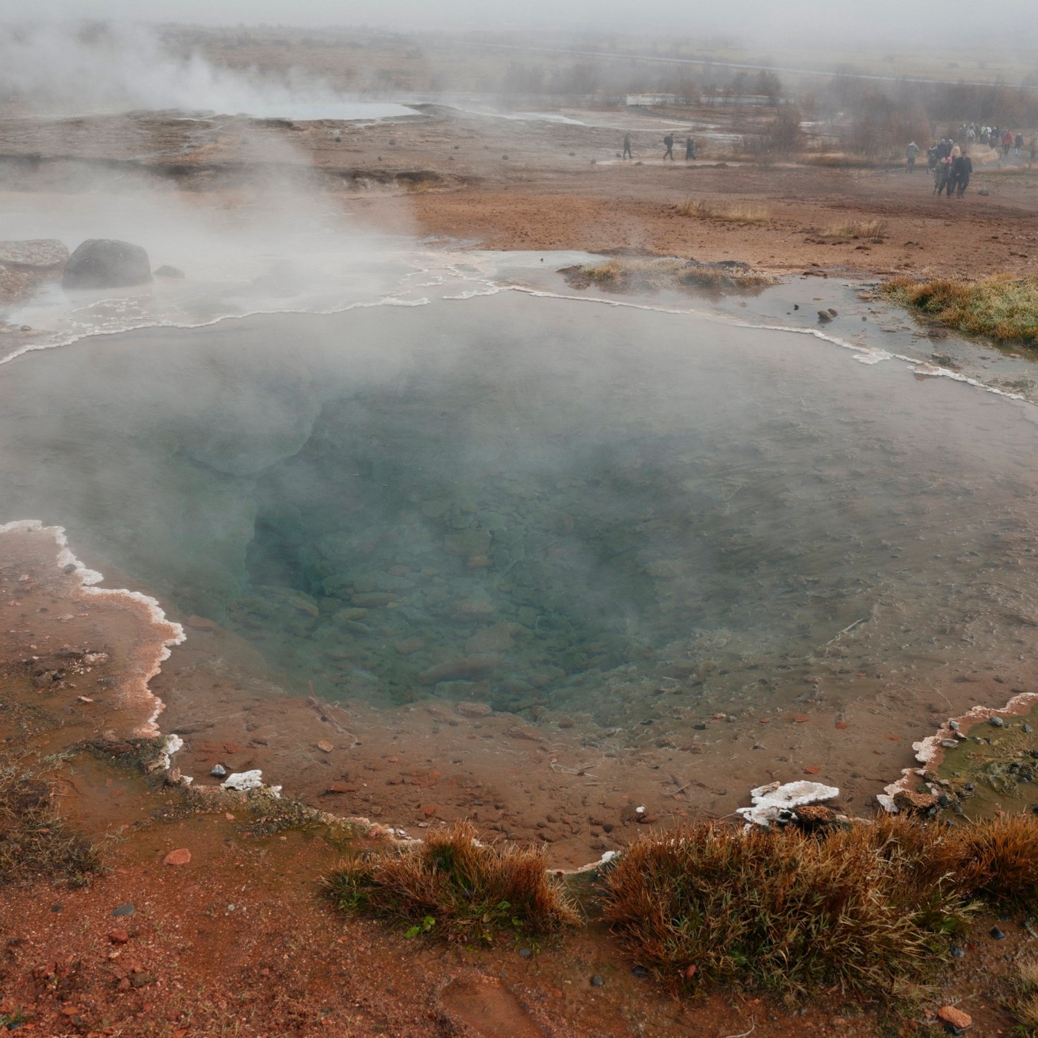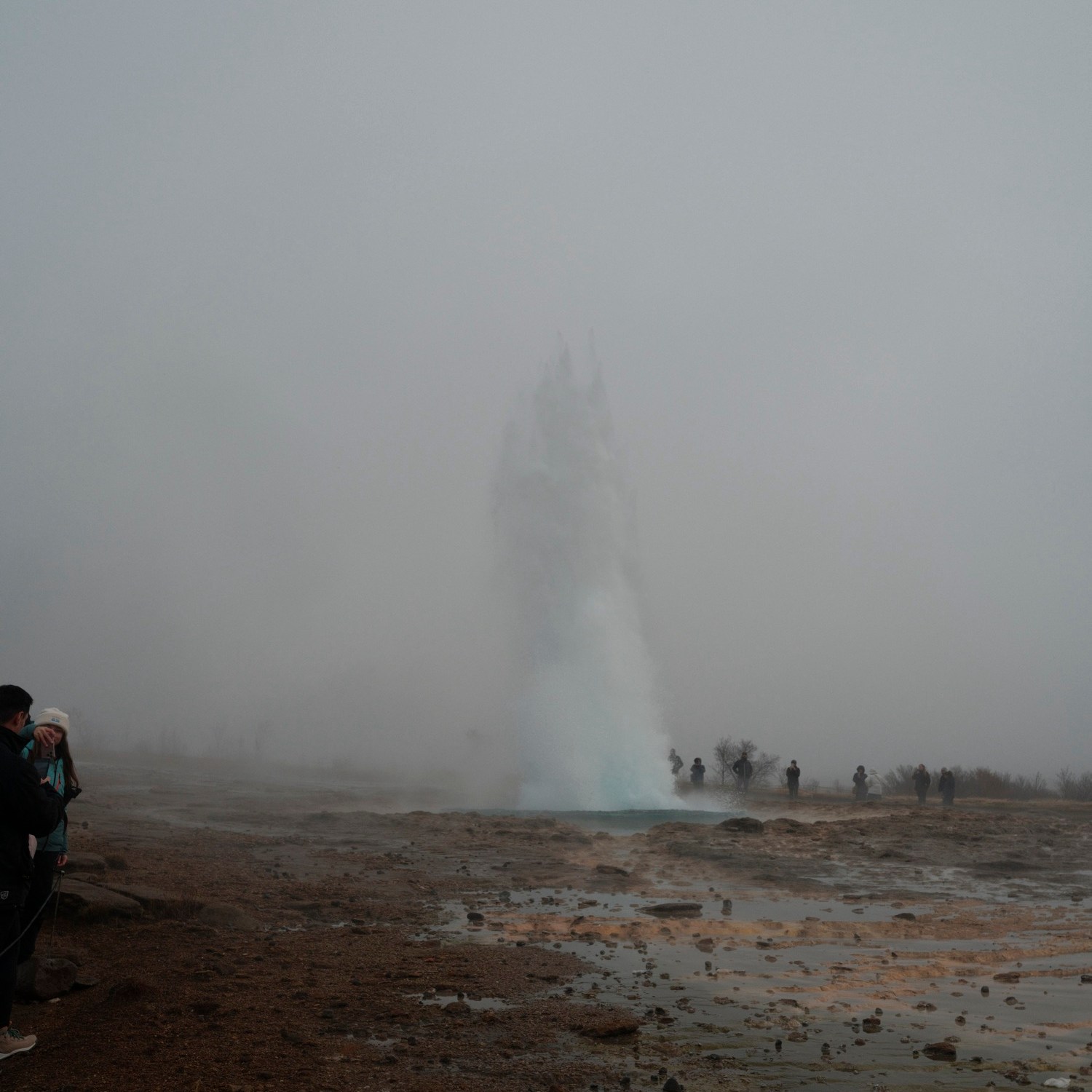 The following day, we spent a rainy morning going to Gulfoss (Golden Falls) to admire its sheer scale and then to the Geysir park to witness the water spout where all geysers get their namesake.