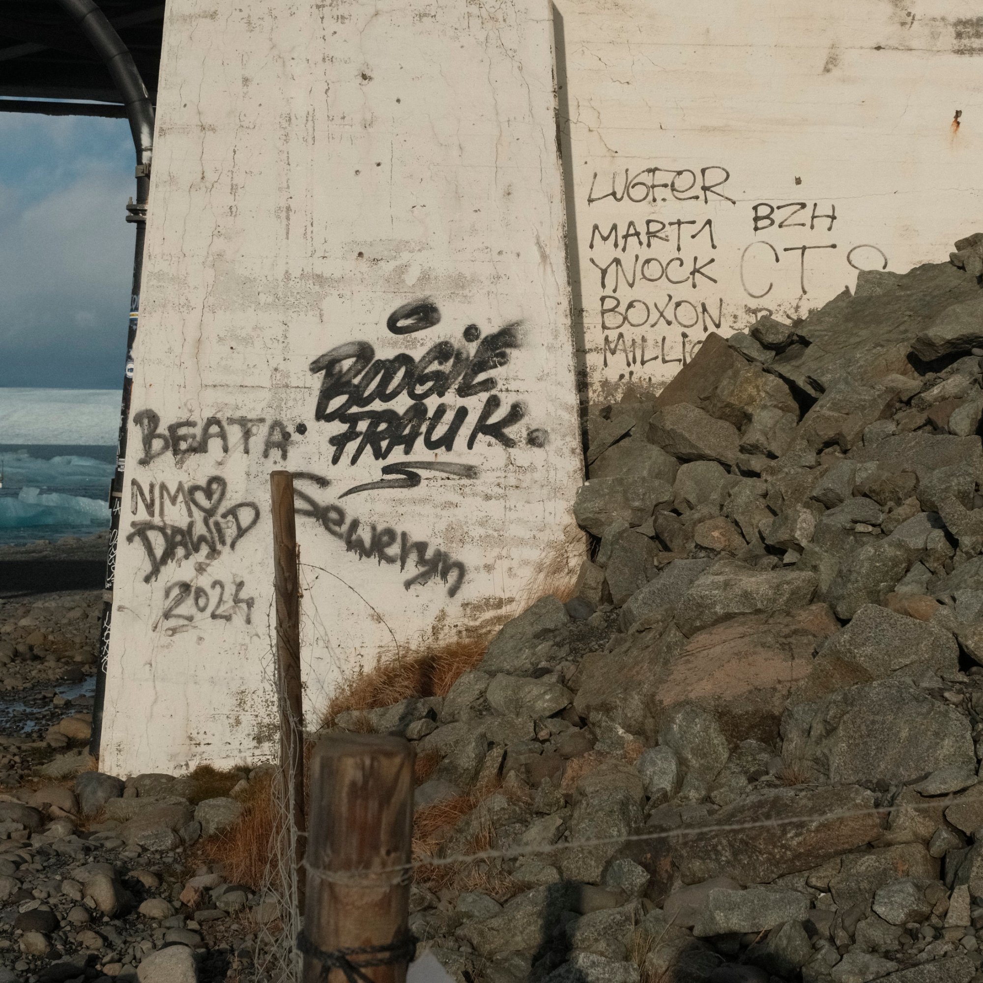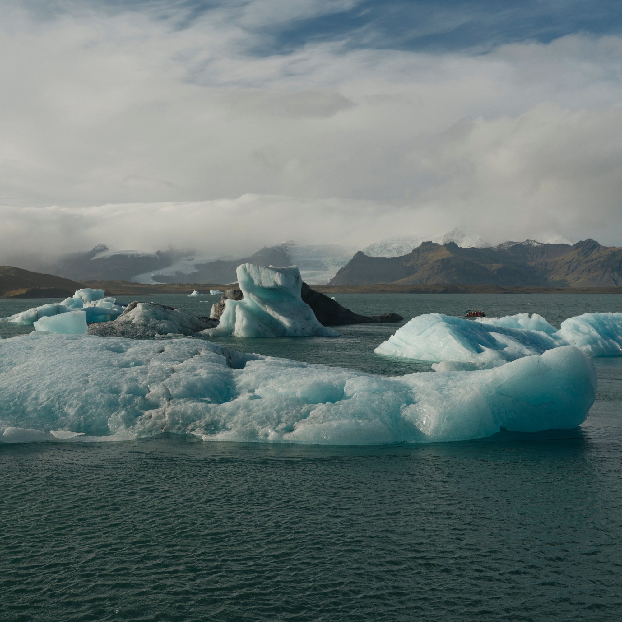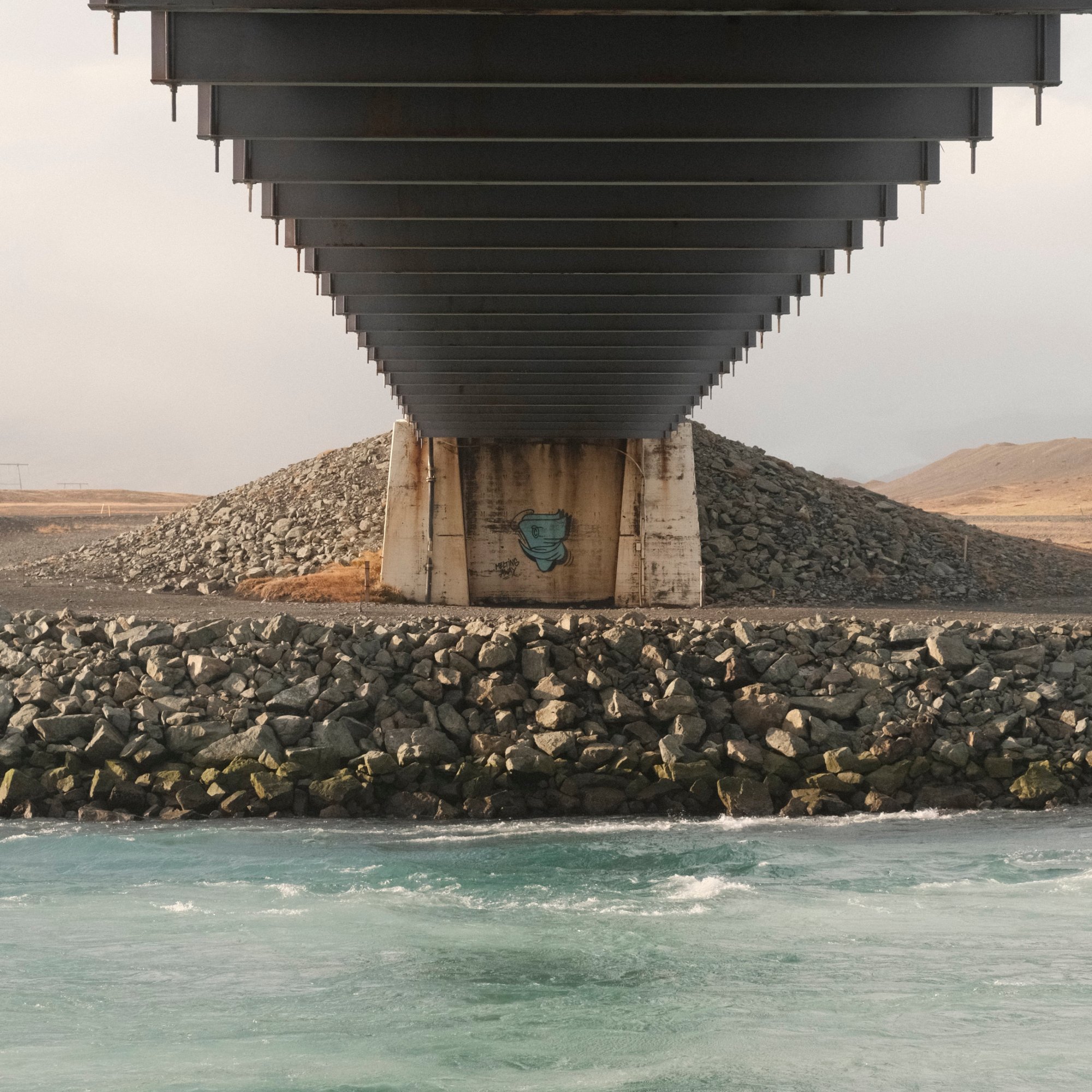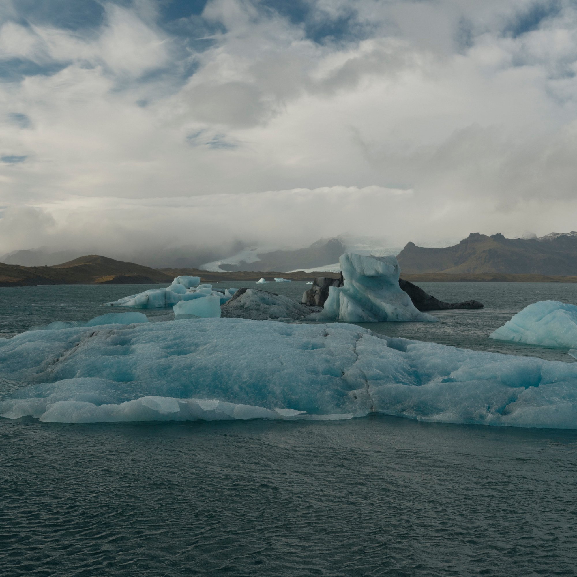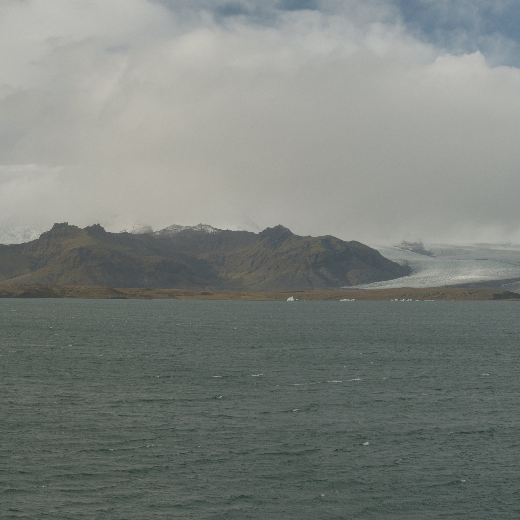 The next morning we’re on our way to Höfn. We pass by the Skeiðará Bridge Monument, where a bridge was swept away by a glacial flood in the mid-nineties. Along the way we stop at the Diamond Beach and the Jökulsárlón Glacier Lagoon. Both the lagoon and beach are fed icebergs and chunks of ice from the glacier on the northern end of the lagoon. Ten years ago, most of this lagoon was filled with ice. Now, my heart sank on the lack of ice in the lagoon. I’m not certain about if it’s a seasonal thing, but it did seem like a very visible result of climate change. On the beach, tourists walked among and took photos of the ice that washed ashore. Some of them sat on the larger pieces for a photo op. Sneaker waves reach out to the tourists catching them off guard causing them to dart further away from the shore.